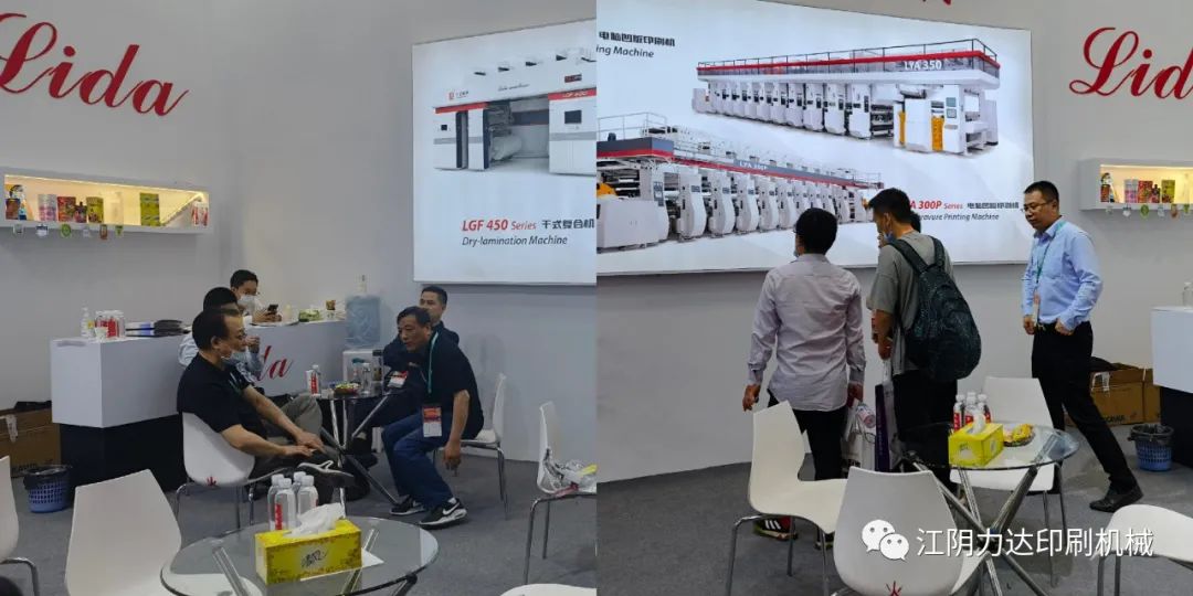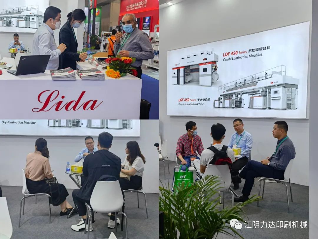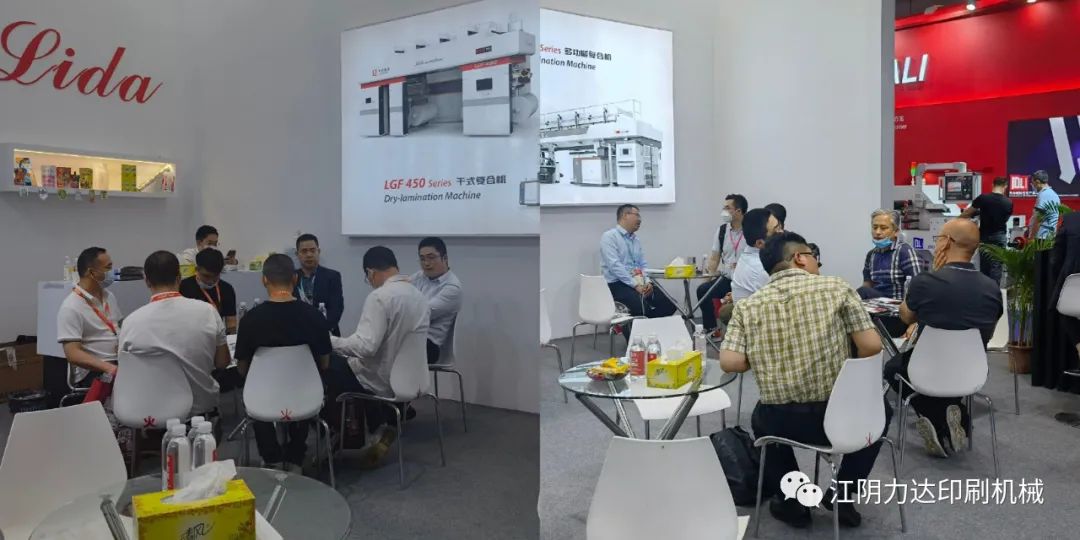 在“碳中和”、“碳達(dá)峰”、“限塑令”升級(jí)下的橡塑行業(yè),發(fā)展循環(huán)經(jīng)濟(jì)、節(jié)能減排等正當(dāng)其時(shí)。這不僅僅是各界熱議的話(huà)題與挑戰(zhàn),更暗藏著巨大的新市場(chǎng)、新機(jī)遇,眾多新能源、5G、新材料等企業(yè)聞?dòng)嵍鴣?lái)。開(kāi)展四天來(lái),許多觀(guān)眾紛紛來(lái)到展臺(tái)進(jìn)行商務(wù)洽談,其中公司最新研發(fā)的LDF 450型多功能復(fù)合機(jī)以及LGF 450型干式復(fù)合機(jī)收到了客戶(hù)的廣泛關(guān)注,咨詢(xún)客商不斷。該機(jī)型最高機(jī)械速度為450m/min,支持無(wú)溶劑、網(wǎng)線(xiàn)輥、半柔版、定點(diǎn)涂布等多種涂布方式,實(shí)現(xiàn)一機(jī)多用,為客戶(hù)節(jié)約更多的成本,實(shí)現(xiàn)更高的經(jīng)濟(jì)效益。