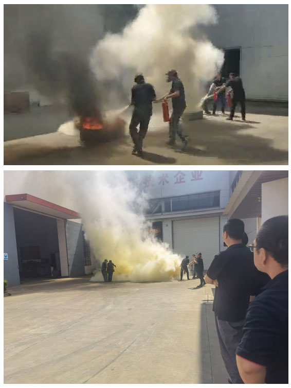 隨著一股濃煙升起、警鈴拉響,大家按照指定路線彎著腰、胳膊肘內(nèi)側(cè)捂住口鼻迅速有序地進(jìn)行疏散撤離,在一分半鐘內(nèi)到達(dá)指定的安全區(qū)域。大家輪流使用干粉、干冰滅火器進(jìn)行實際火源滅火操作,通過實踐,讓大家熟練掌握了滅火器的使用方法和要領(lǐng)。